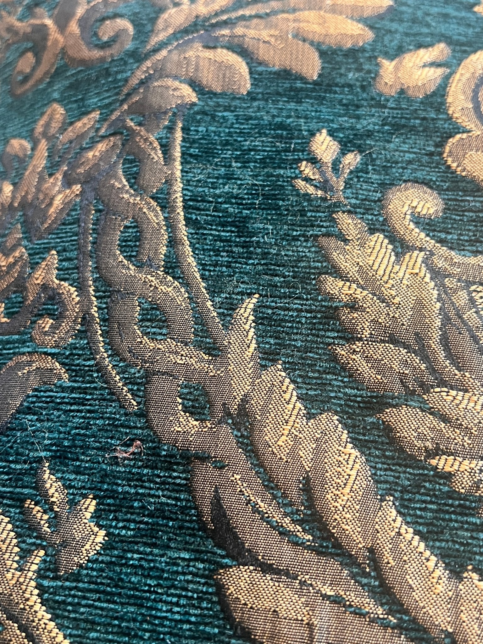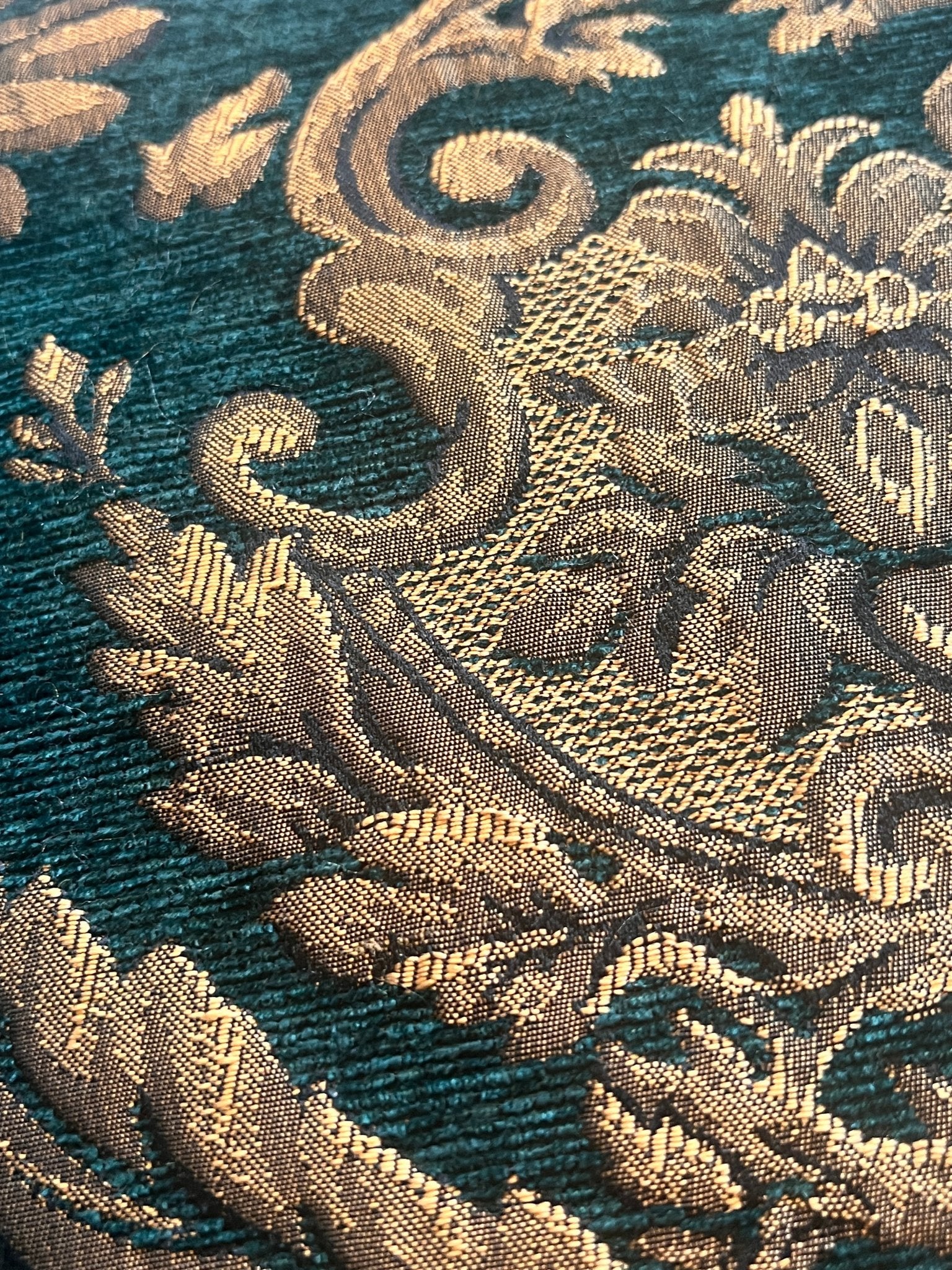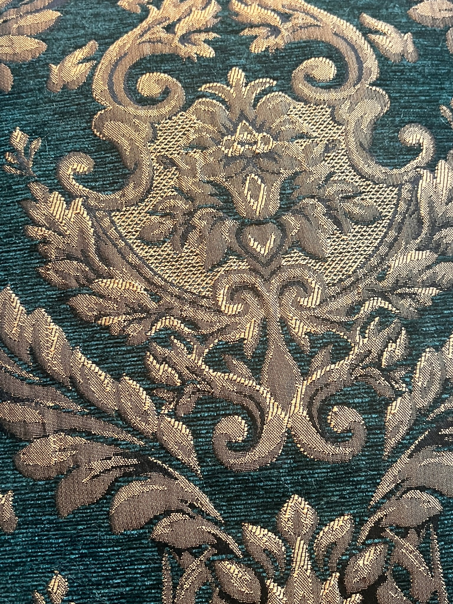 This Beautiful, green and gold damask pillow would fit right into the Victorian era. The colors, being a dark green and warm gold tone would lend quite nicely to a traditional interior.